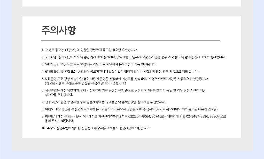 ¼¼Á¾»çÀ̹ö´ëÇб³ ÀÚ»ê°ü¸®°ÇÃà°Ç¼³ÇкΠ(ºÎµ¿»êÇаú, ºÎµ¿»ê°æ¸ÅÁß°³Çаú, °ÇÃࡤµµ½Ã°èȹ¡¤ÀÎÅ׸®¾îÇаú, ȯ°æÁ¶°æÇаú)¿Í ÅÂÀΰæ¸Å´Â °³ÀÎÁ¤º¸ °ü·Ã ¹ý·ü(°³ÀÎÁ¤º¸º¸È£¹ý, Á¤º¸Åë½Å¸Á ÀÌ¿ëÃËÁø ¹× Á¤º¸º¸È£¿¡ °üÇÑ ¹ý·ü)À» ÁؼöÇÏ¸ç ¼öÁýµÈ °³ÀÎ Á¤º¸´Â ÇØ´ç ¼ºñ½º ¿Ü¿¡ ´Ù¸¥ ¿ëµµ·Î Àý´ë »ç¿ëÇÏÁö ¾ÊÀ¸¸ç, »ç¿ëÀÚ ¿äû ½Ã ¹Ù·Î »èÁ¦ÇÒ ¼ö ÀÖ½À´Ï´Ù.