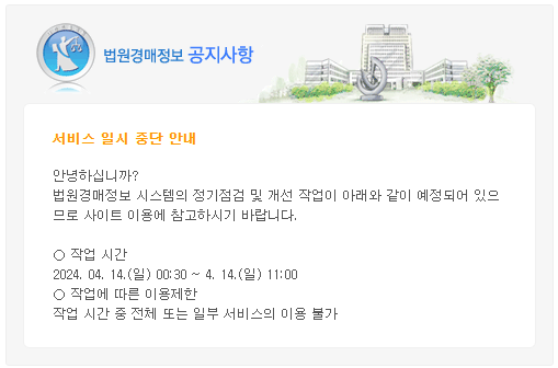 ´ë¹ý¿ø ¹ý¿ø°æ¸ÅÁ¤º¸ »çÀÌÆ® Á¡°Ë ±â°£ Áß ºÎµ¿»êÅÂÀÎ »çÀÌÆ®´Â Á¤»óÀûÀÎ ÀÌ¿ëÀÌ °¡´ÉÇÏ¿À´Ï